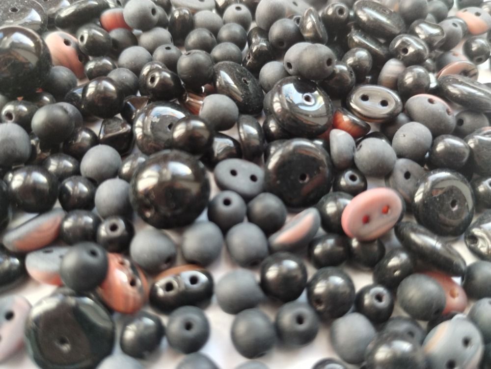 Korálky mačkané černá/červená mat/žíhaná lesk a mat různé tvary