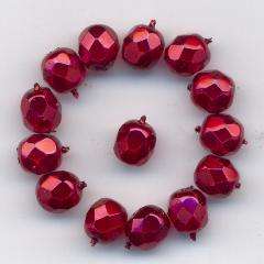 České skleněné voskované korálky 7 mm (barva) rubín - broušené